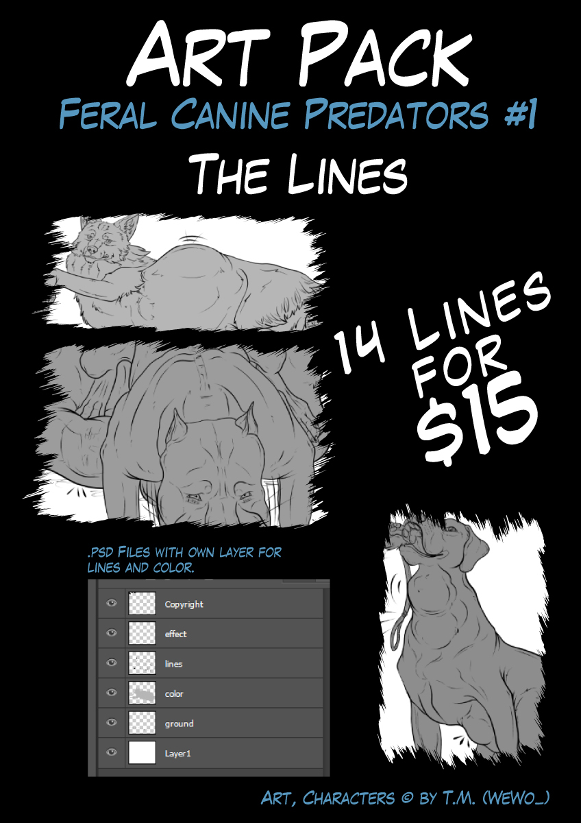 Here you can get all the lines to color from "Feral Canine Predators #1" as .psd